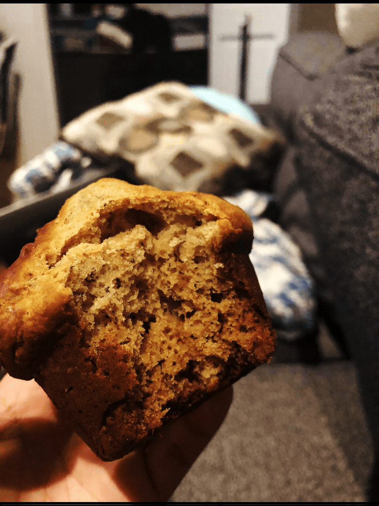 This batch was, honestly, probably the worst that I’ve made so far – again, I don’t recommend eyeballing the measurements, especially when baking soda just splats out of its container – but it was still delicious and I’m looking forward to finishing them for my next couple of breakfasts.